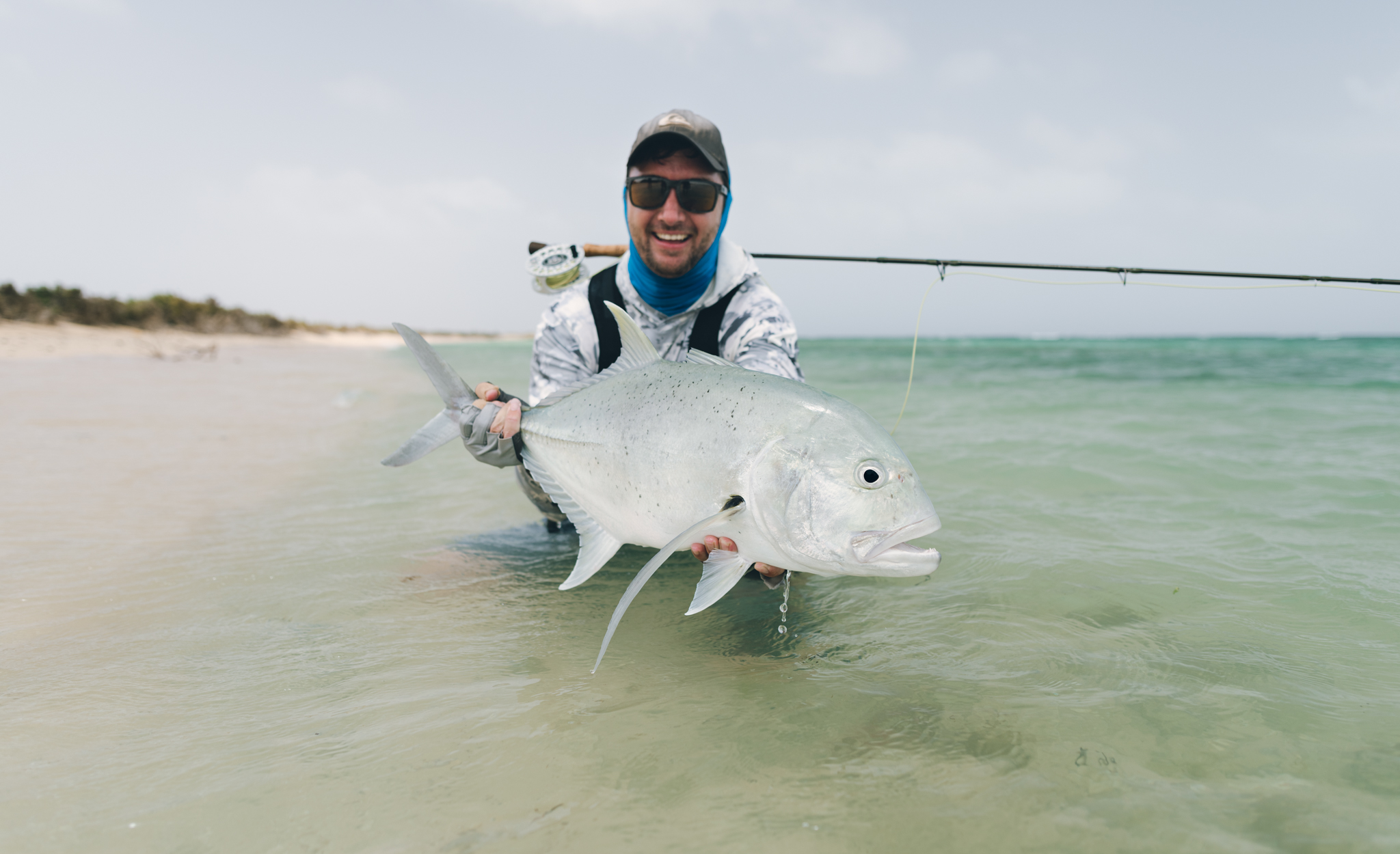 As the week progressed, the weather seemed to ease up much to the guys delight! It wasn’t long before we were back onto the fish as they seemed to feed far more freely in the calmer weather, as if the light switch had been flicked on. The following day saw 45 bluefin trevally come to hand as well as a fantastic rainbow runner which came towards the boat in pursuit of a NYAP. Frikkie Maartens made no mistake once more and managed to put the fish in the boat. Earlier that morning he was also able to coax a truly magnificent barracuda on the flats after it had made short work of a bluefin trevally that Frikkie Botha had hooked a moment earlier. The barracuda took off across the flat with incredible speed and an insane acrobatic display… We were fortunate enough to keep it buttoned as we were caught off guard and were simply using 110lb mono intended for GT’s. Thankfully the fly found the scissors perfectly making for yet another amazing memory.