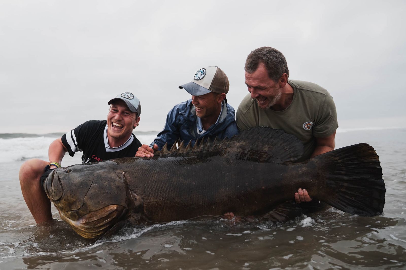 As the sea finally calmed, Guide Aiden du Toit pinned a barracuda head and lobbed it just past the backline. After 45 minutes, his rod folded flat and the drag howled. The fight dragged on for half an hour—Aiden working the fish into the shore break, only for it to surge straight back out. At first, everyone thought it was a sand shark or stingray.