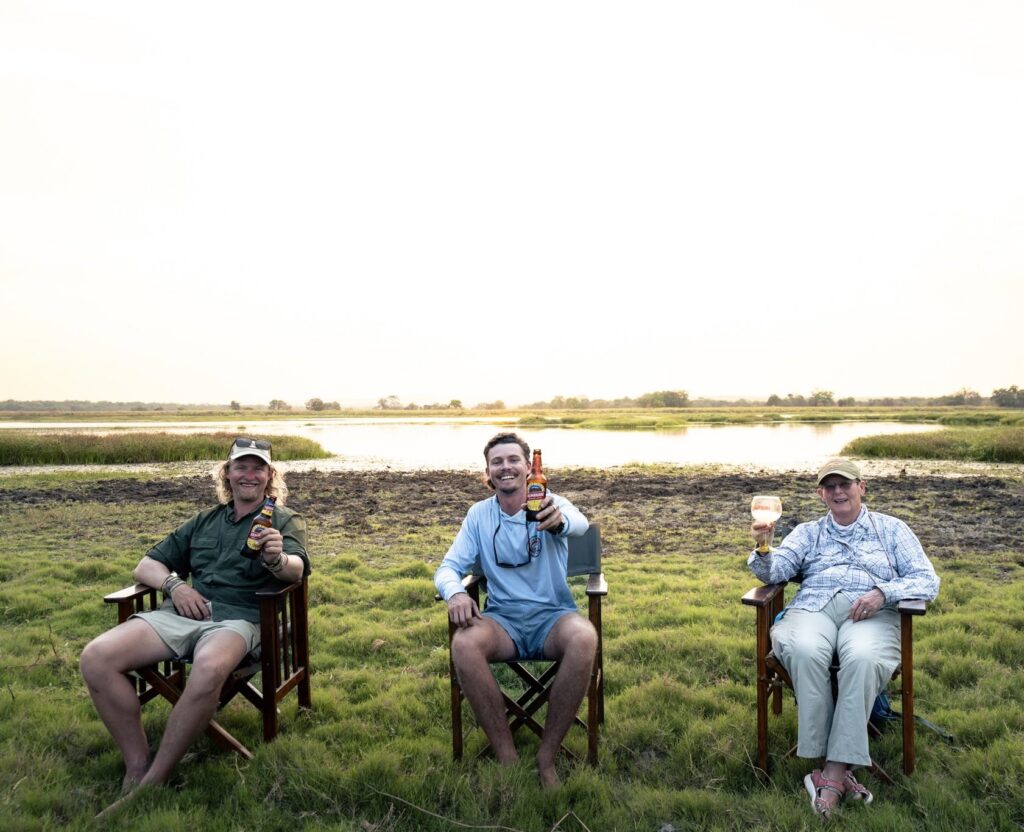 To close out opening week, the crew gathered for sundowners at the pan — a timeless African Waters ritual. As the sky turned gold and a small herd of elephants wandered in to drink, the team raised a glass to the start of what’s already shaping up to be a memorable season.