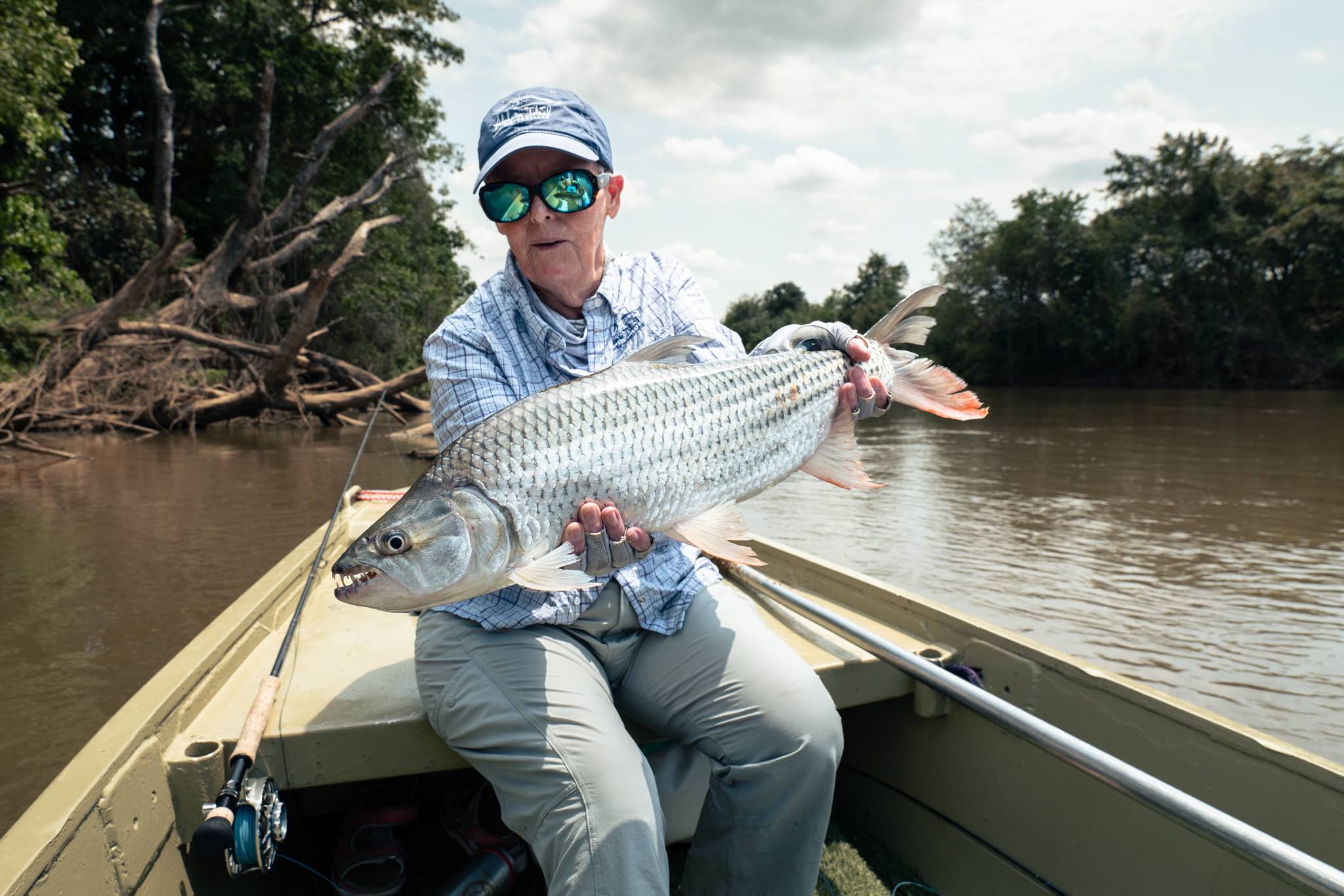 Tigerfish Tanzania: The second week kicked off with a small, lively group of three anglers — a relaxed start to what promises to be a strong year in the valley. Among them was Chantel Chone, better known in camp as the “crazy grandma.” While unpacking, she realised one of her 9wt rods had somehow transformed into a 6wt. Most anglers might have been frustrated, but Chantel wasn’t fazed in the slightest.