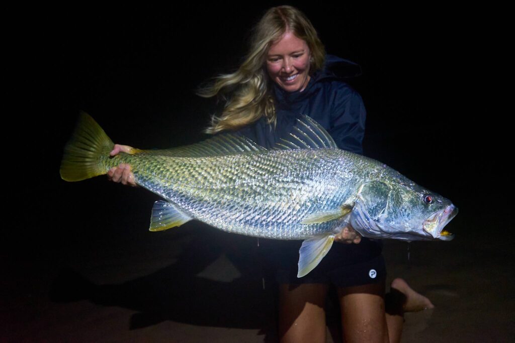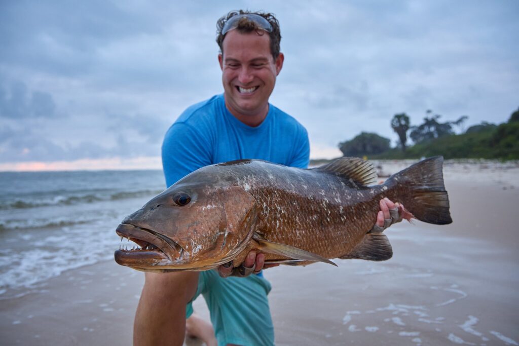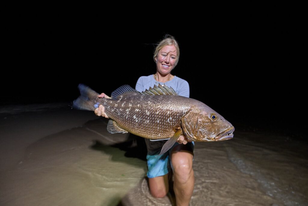 Fly-fishing after dark was no easy task, but Mike’s commitment stood out. He barely took a break and was rewarded with several kob on fly, a strong Cubera snapper, and even a jumped tarpon in big surf and strong wind. Some decided to abandon the fly rods altogether, preferring to swim live mullet instead. Every day we stray further from God. That move paid off with Cuberas around the 10 kg mark, a solid kob for Christin — the only lady in the group — a small bull shark, and a few sand sharks that kept Nigel, the oldest and most enthusiastic angler, entertained.