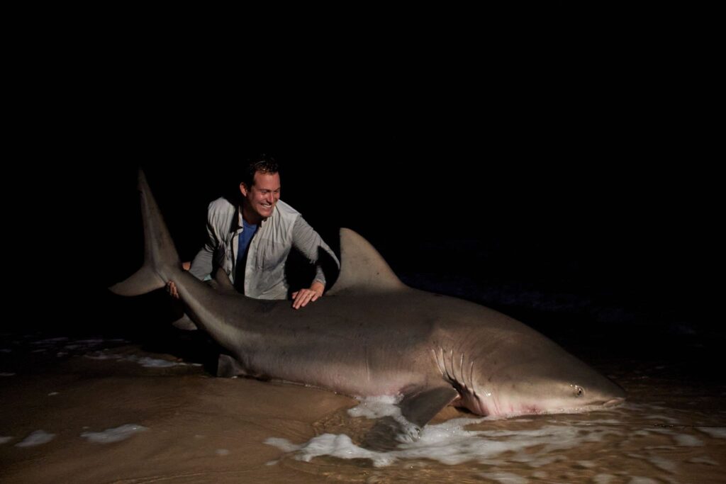 Once most of the group crossed into bait territory, the next obvious challenge was a bull shark. Out of four hookups, only one made it to the beach. The first spat the hook, and two others were cut off when sharks swam into the line mid-fight. Oliver finally landed a 218 cm PCL bull shark, weighing about 195 kg. Watching a fish like that roll out of the mouth is always something to see — and a good reminder why no one swims there.