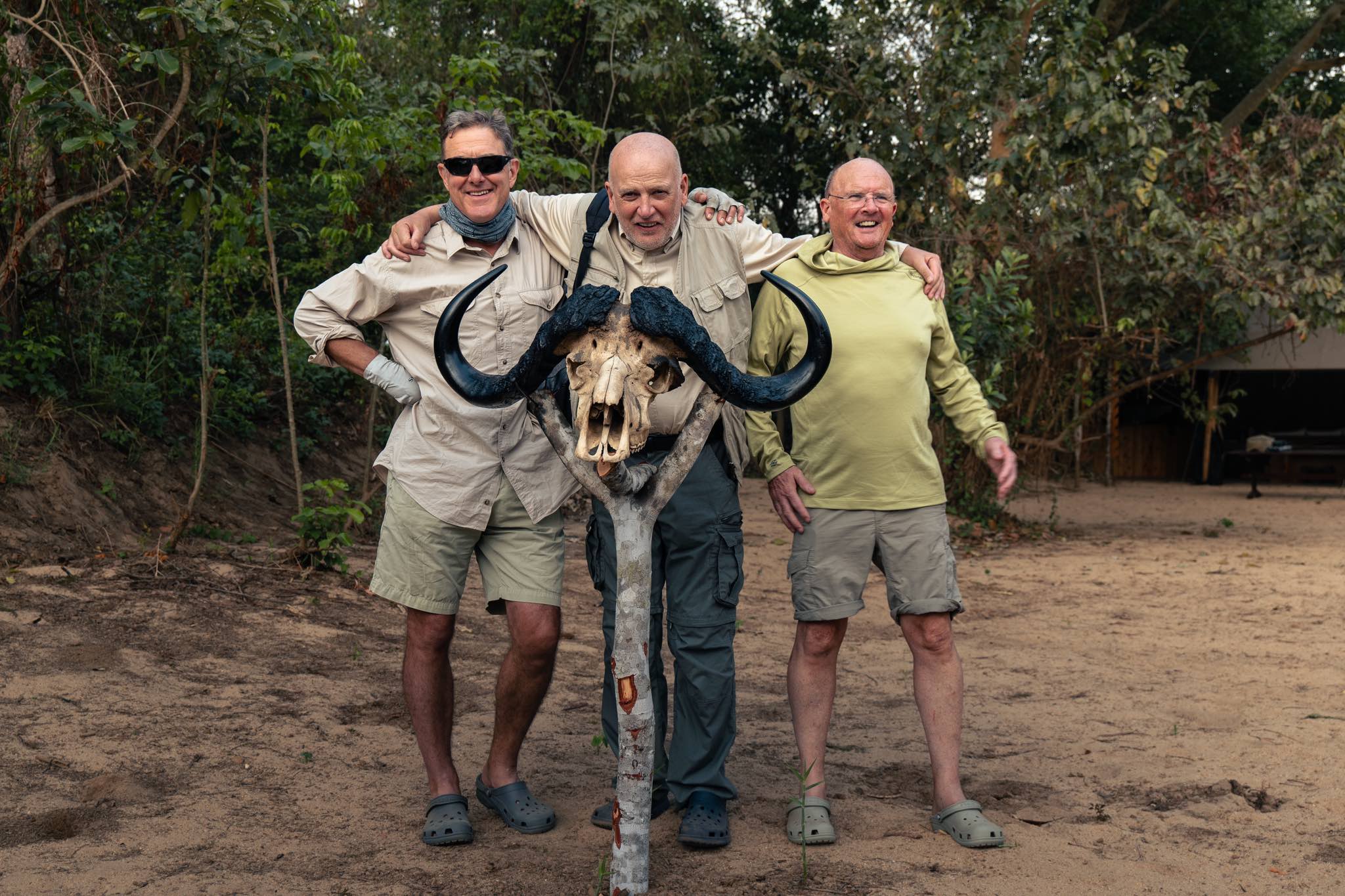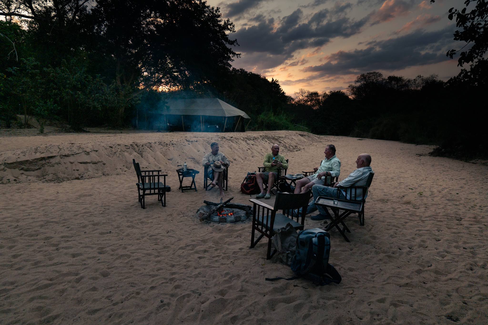 One morning on the Ruhudji, the team was treated to a rare sight—two African wild dogs trotting along a sandbar. They moved closer, curious about the boat, before melting back into the bush. It was a moment that stopped everyone in their tracks. These sightings are special not only for their rarity but also for what they represent: a thriving ecosystem and a truly wild place.