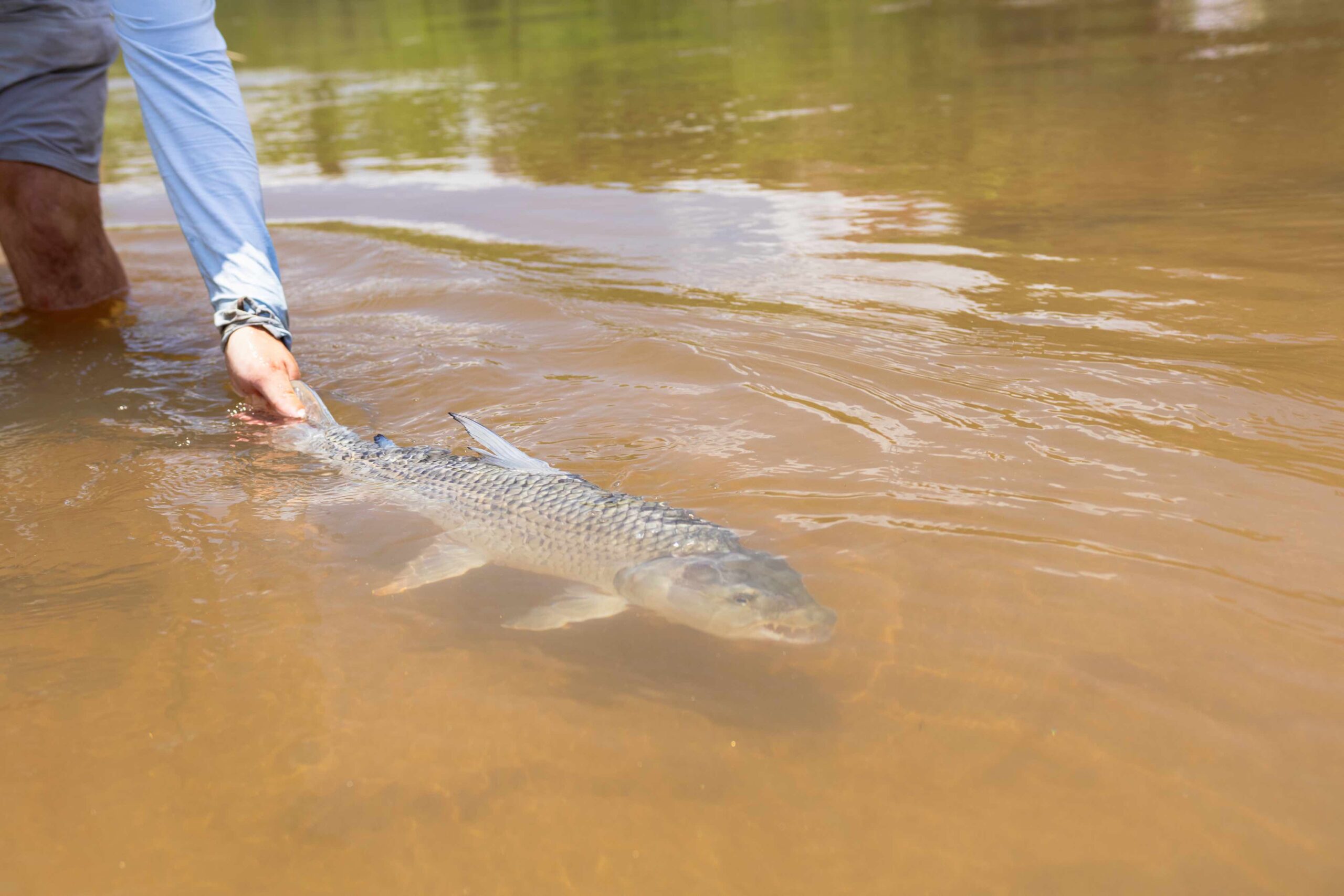 Some guests were curious about why we take photos off the boat. The answer is simple: it’s safer for the fish. On the sandbars, the fish can be supported gently in the water, breathing between photos and avoiding any damage from hard surfaces. The guides always select shallow, clear stretches where visibility is excellent and keep a close watch on the surroundings. It’s all part of keeping these fish healthy and ensuring they swim away strong.