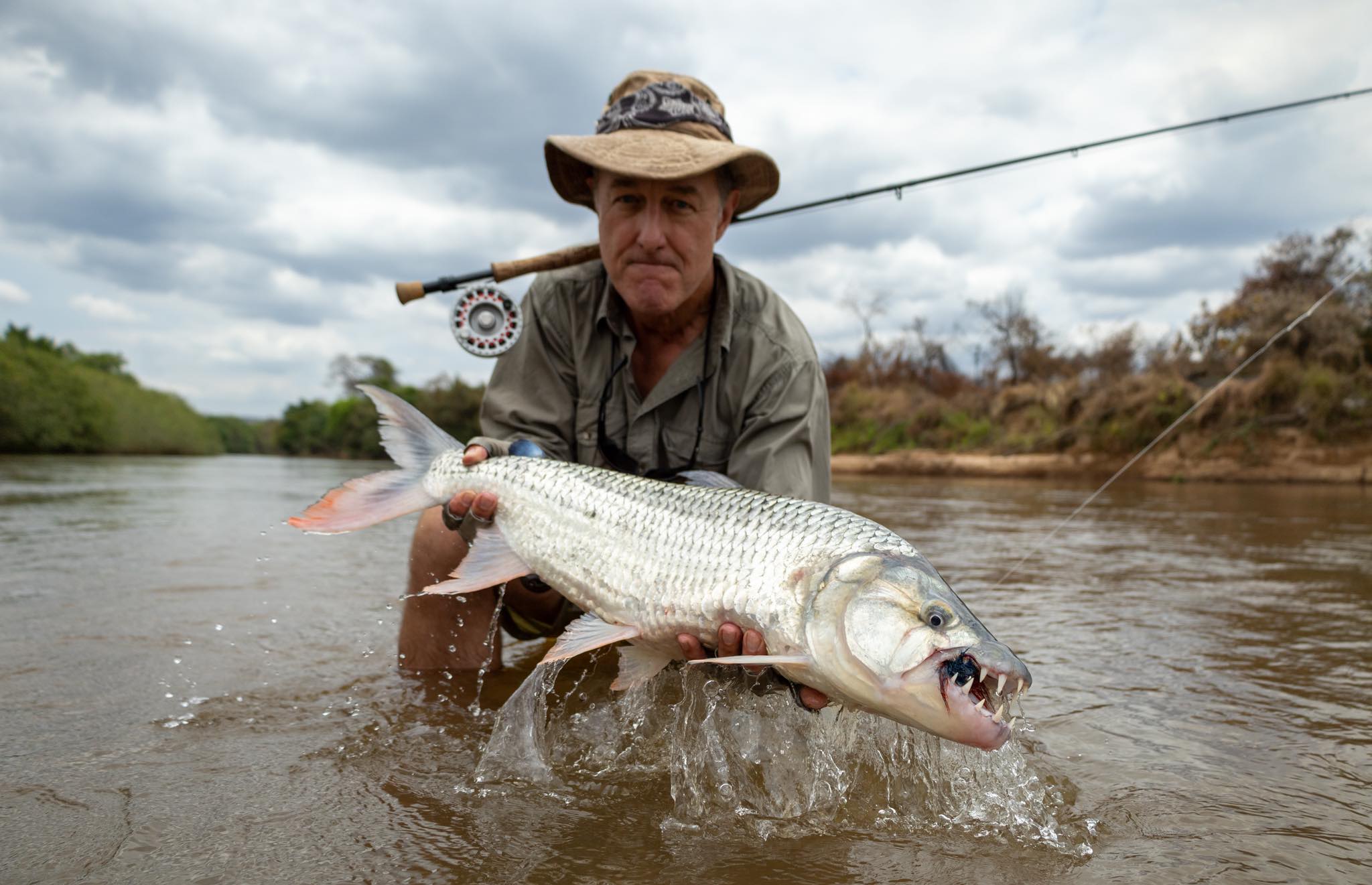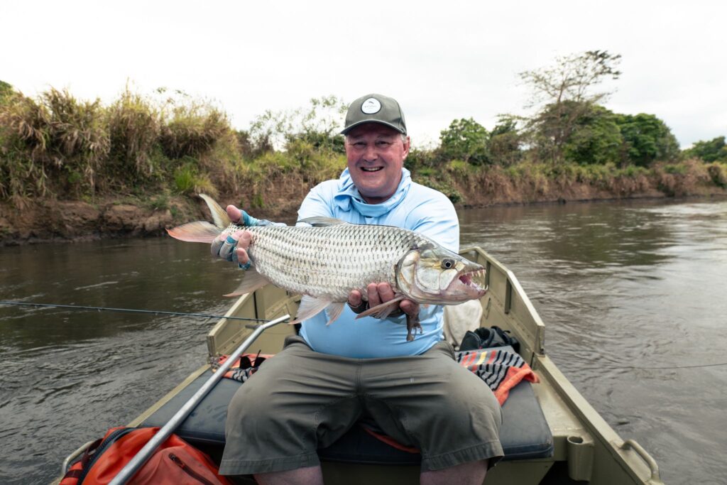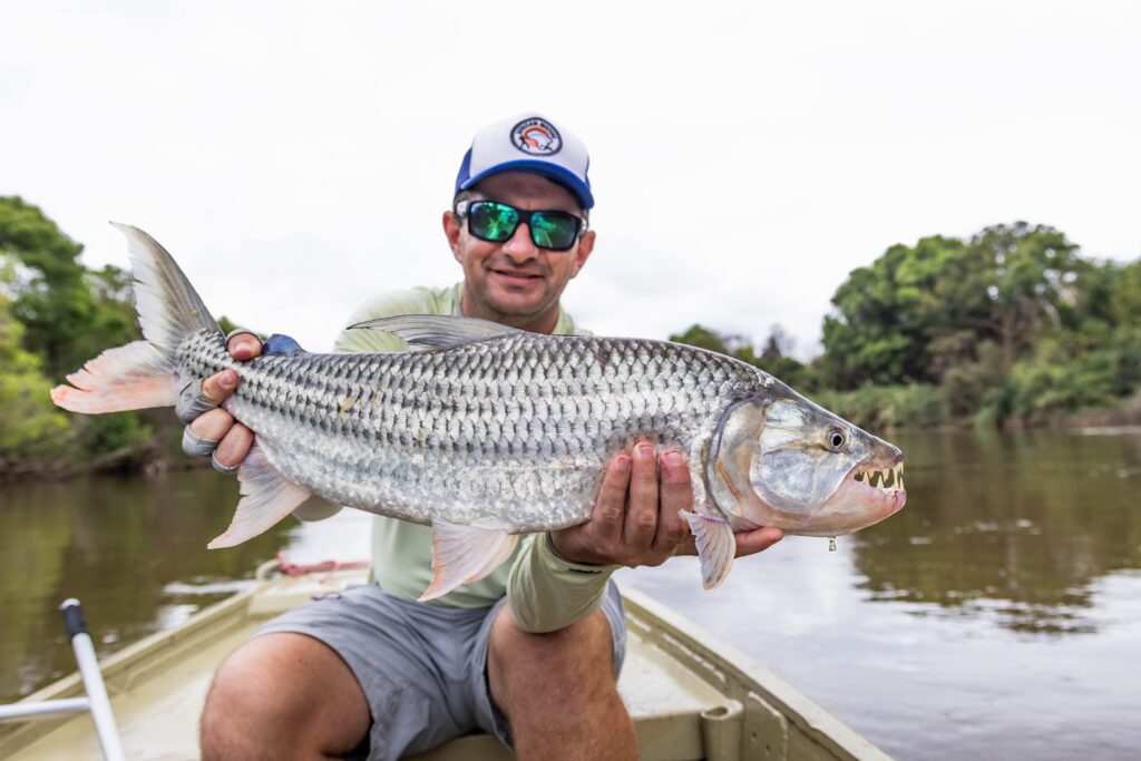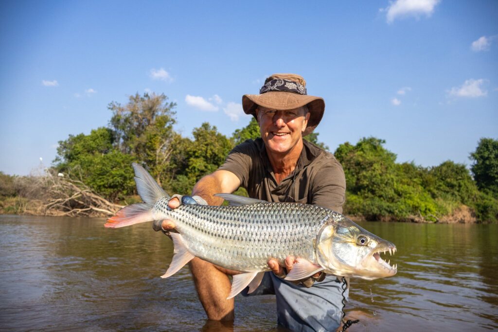 Few fish are as tricky to hook as a tigerfish. Their mouths are built mostly of hard bone, with very little soft tissue for a hook to grip. A late strike or a second of slack line, and the fly comes free. Add in their powerful jumps and head-shakes, and it’s easy to see why every fish landed feels like a real achievement.