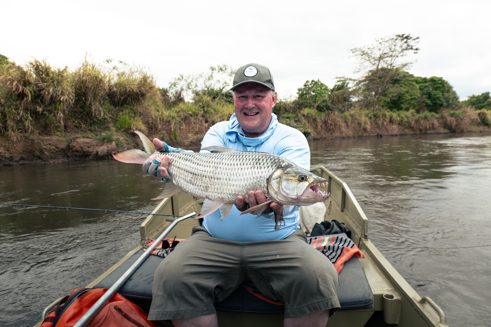 The week started with a new team of anglers settling in, tackle prepped, and spirits high. Everyone was eager for the first full day on the upper beat. After a quiet morning, Ronin’s fly was suddenly smashed beside the boat in an explosion of water and teeth. The blue tigerfish launched clear of the river—so close it nearly landed on deck. It’s safe to say everyone was wide awake after that. Several fish followed, including a solid 12-pounder that capped off a great start.