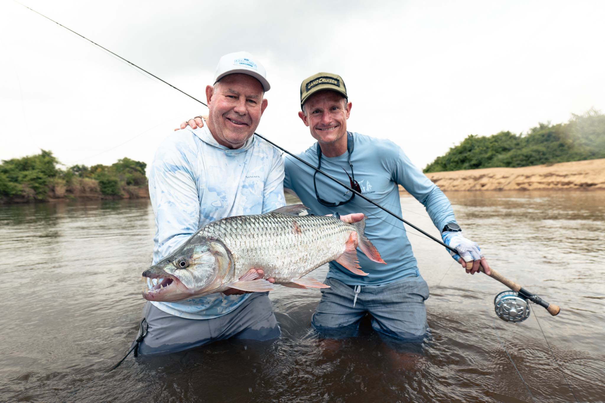 When the tiger surfaced near the boat it shook free and the fly came out clean. The disappointment lasted a second. Then we saw the net. The fish had landed in it mid-jump. A strange way to land a tiger, but it counted. Twelve pounds. A moment that the whole group replayed for the rest of the week.