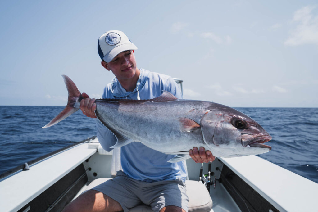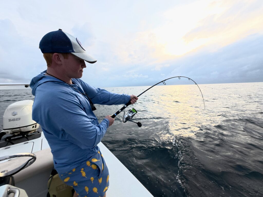 Father and son share the spotlight this week. After locating the right structure offshore, we dropped big live baits and both rods went tight almost instantly. Light gear made the fight even better, with both fish taking line, turning, and digging deep for a solid fifteen minutes.