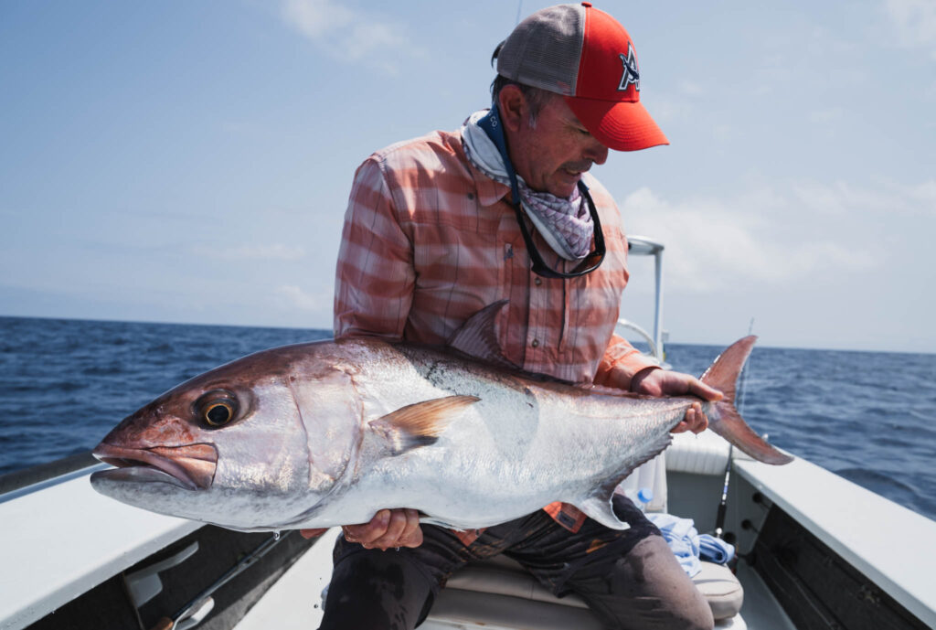 The fights were classic amberjack—gaining line, losing line, and feeling every head shake through the rod. The first fish to show was a clean amberjack of around 15 kg, followed by more in the same class. The biggest pushed close to 20 kg.