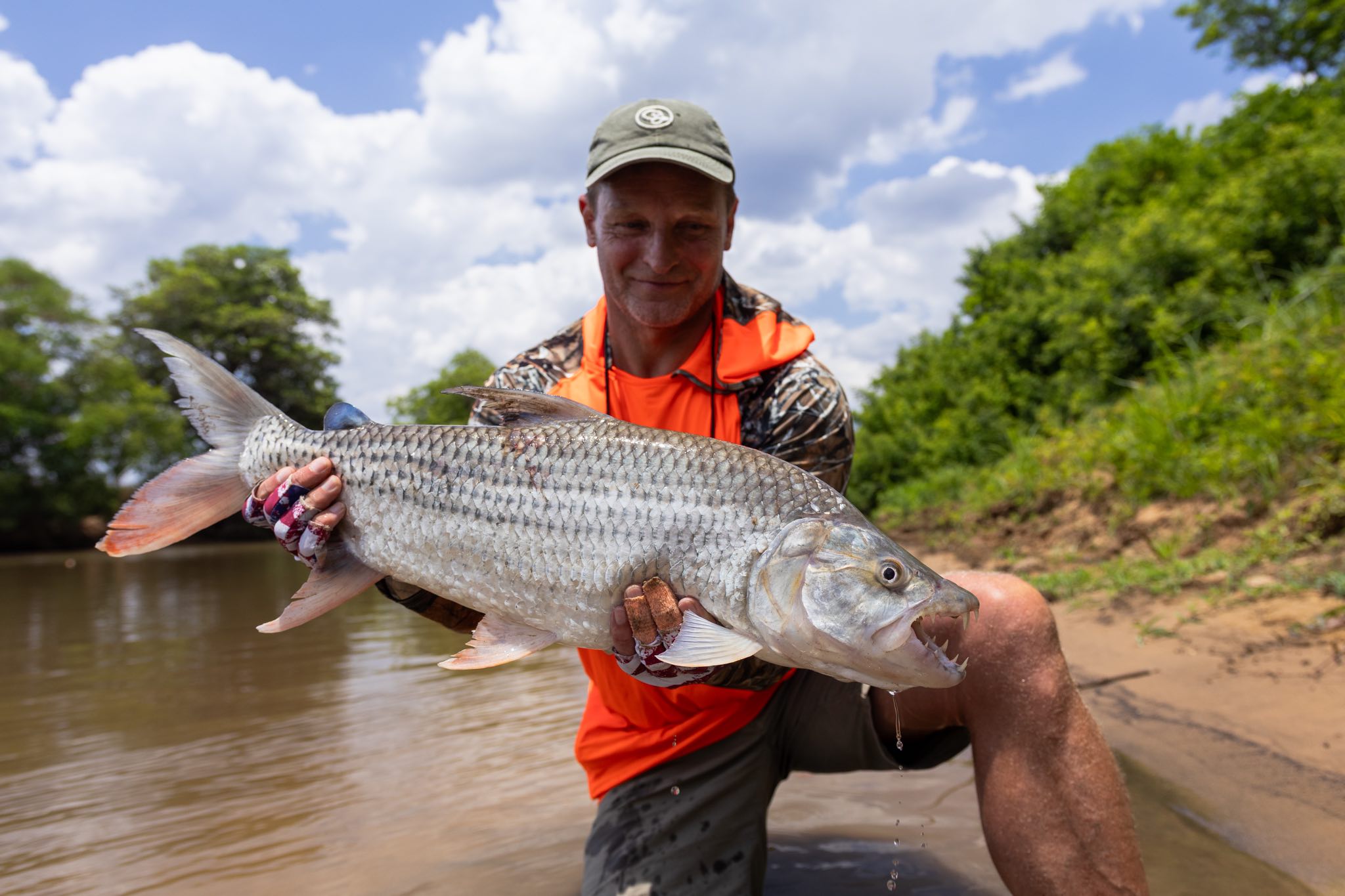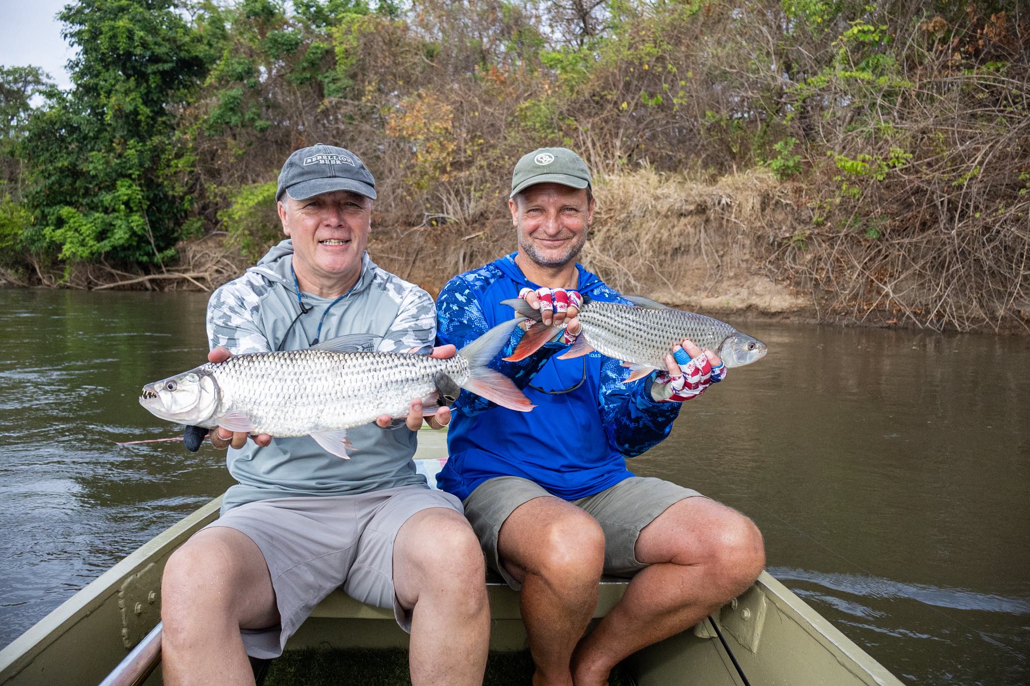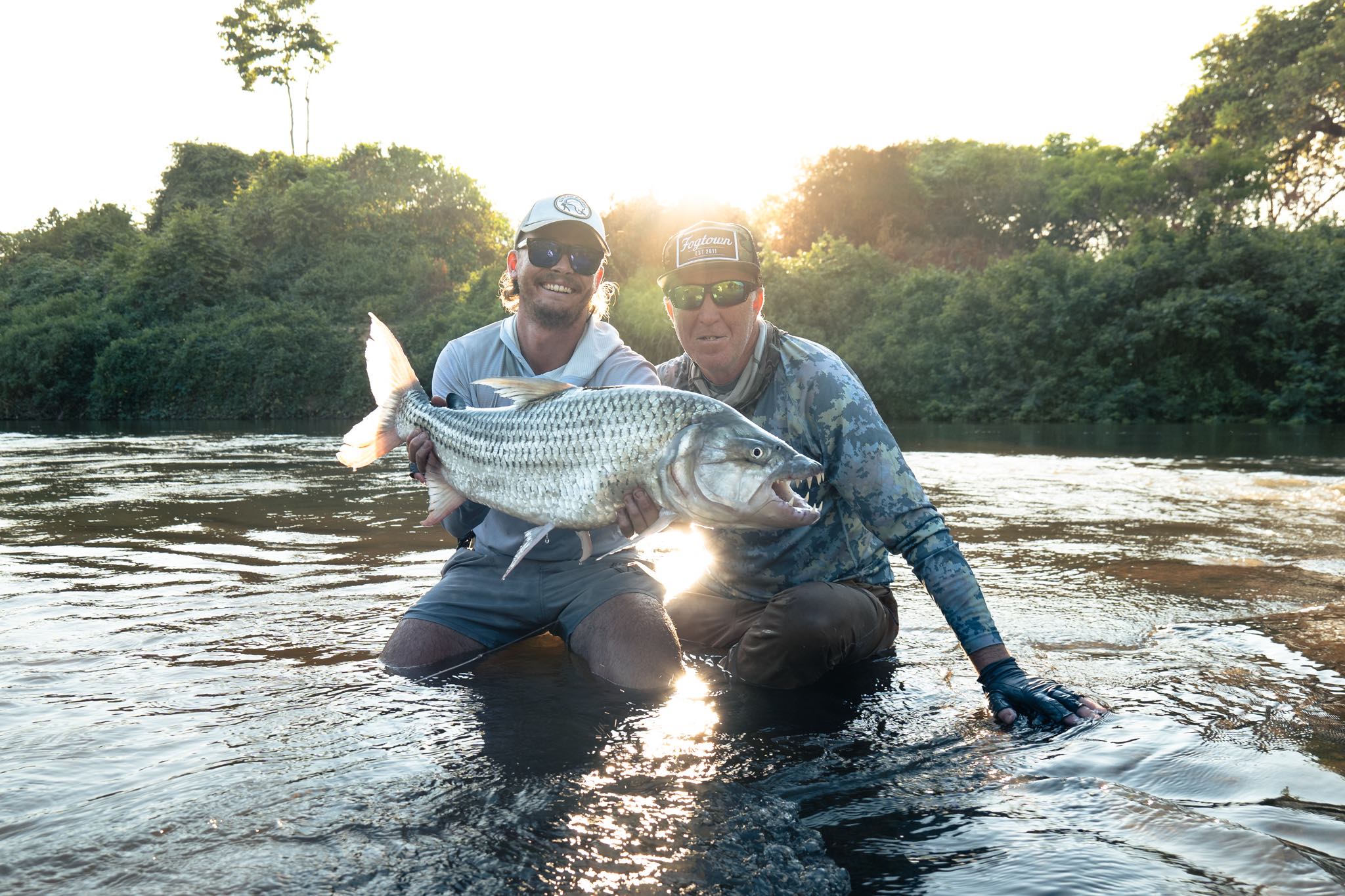What followed was controlled chaos. Two anglers, two powerful fish, and very little room for error as lines crossed and fish changed direction. Somehow, both tigers ended up in the net. Seeing two of these fish side by side never gets old, no matter how many seasons you’ve spent here.
