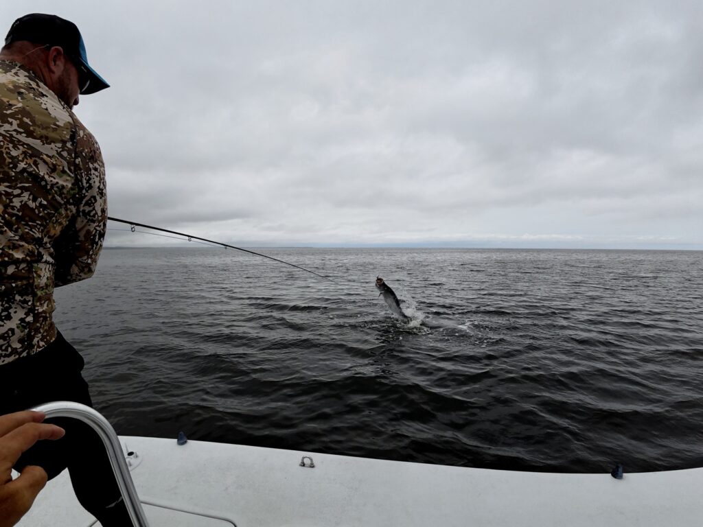 Day one set the tone. Calm water allowed shots at both laid-up fish and rolling schools, and three tarpon were landed on the first day. For any angler, that kind of start builds confidence fast.