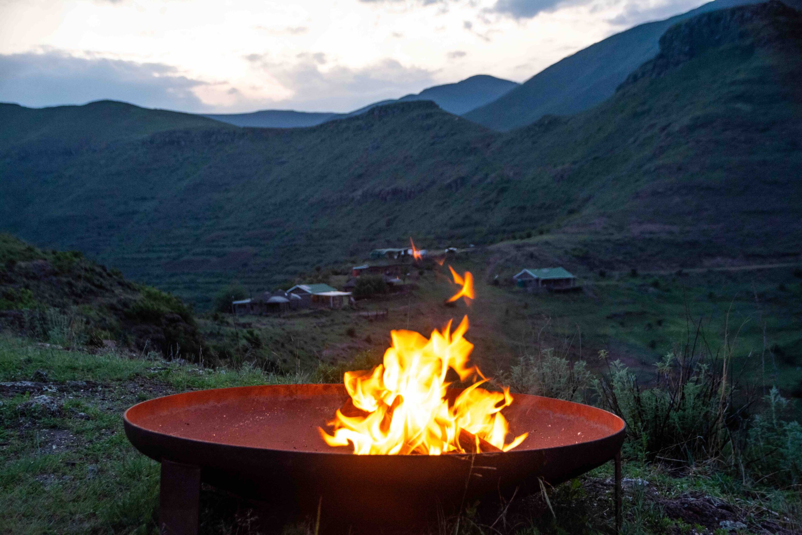 The mountain spur overlooking the Bokong River is a short walk away, yet it feels removed from everything. From up there, you look down onto the river threading through the valley, surrounded by high peaks and open sky.