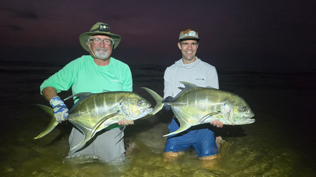 Evenings demanded adjustment. Fly anglers worked hard in strong current and bright moonlight. When conditions favoured it, switching to lures produced solid snapper, kob and threadfin. Both approaches have their place here. Sette Cama rewards anglers who adapt rather than stick rigidly to one method.