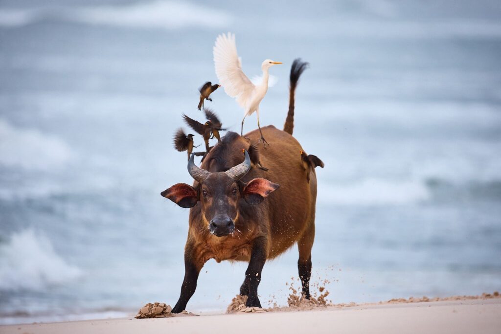 Sleeping under giant trees on a cliff overlooking the Atlantic, with the sound of waves below and reed frogs calling from the lagoon, is something few people experience. At first light, they watched hippos leave the surf and move back into their lagoon. A forest buffalo, covered in oxpeckers, made its way down the beach and had to pause while the hippos crossed. It was one of those mornings where you are reminded that this stretch of Gabon is still properly wild.