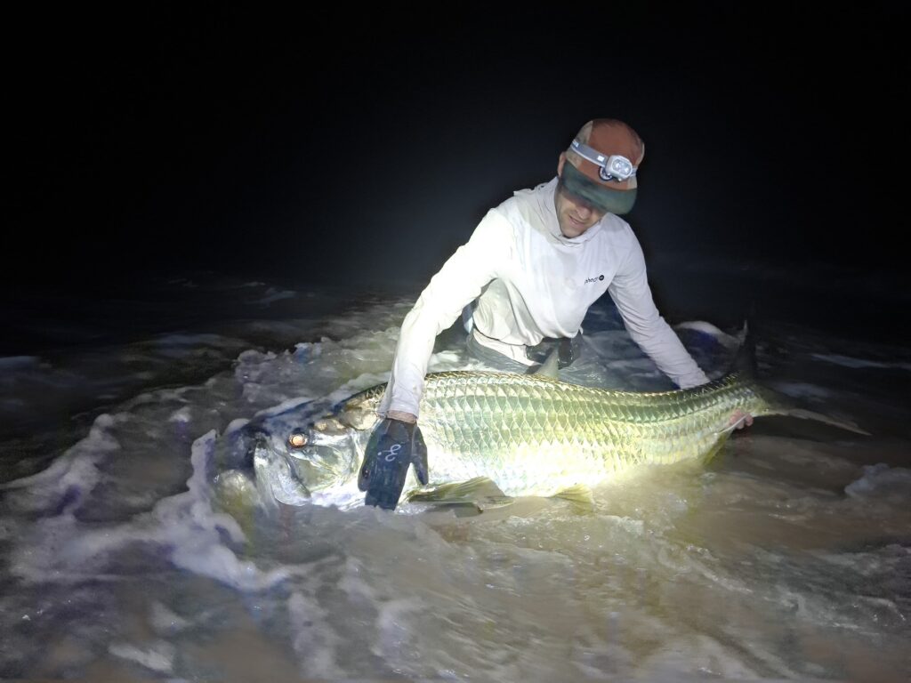 That is tarpon fishing here. Brutal, technical and never guaranteed. You do not measure the night only by what hits the sand. You measure it by the moments when everything is on edge and you know you are connected to something heavy in dark water.