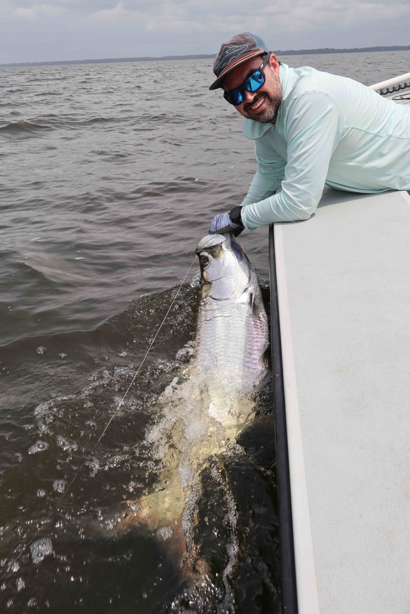 Thirty minutes later, she landed a beautiful tarpon of 115lb. Her first.