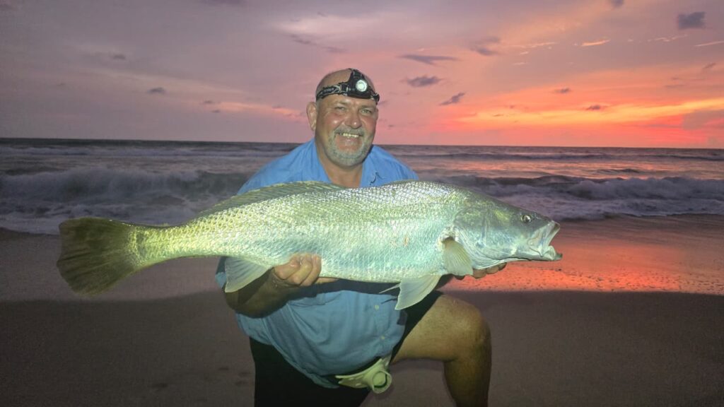 As the tides shifted, fish moved closer. Snapper and threadfin came into range, and a few solid fish were landed during these windows. Ricciardo picked up a quality threadfin, while Enrico landed his first fish on a new spinning setup, a small tarpon.